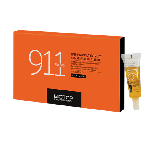 ביוטופ 911 היא הסדרה המתקדמת ביותר לשיקום וחידוש שיער פגום ויבש. הסדרה מבוססת על קינואה עשירה בחלבונים, ויטמינים ומינרלים המזינים את השיער מבפנים ומחזירים לו את הברק הטבעי. ביוטופ שמפו 911 מנקה בעדינות תוך מתן הזנה עמוקה, בעוד שביוטופ מסכה 911 מספקת טיפול אינטנסיבי לשיער שניזוק מטיפולים כימיים או חשיפה לחום.