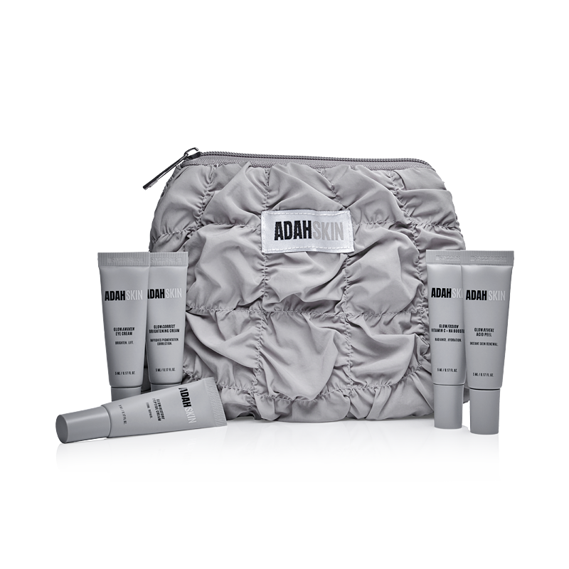 מחפשת דרך לחוות את קו המוצרים המלא של ADAH SKIN או לקחת את שגרת הטיפוח המושלמת שלך לכל מקום? מארז Glow Collection Mini Set של ADAH SKIN הוא הפתרון המושלם – מארז יוקרתי המכיל 5 מוצרי טיפוח חיוניים מסדרת GLOW בגדלים מוקטנים של 5 מ"ל כל אחד. המארז מעניק שגרת טיפוח מלאה ומקצועית לעור זוהר, בריא וצעיר, ומתאים במיוחד לנסיעות, לניסיון לפני רכישת גדלים מלאים, או כמתנה מושלמת לאדם אהוב.