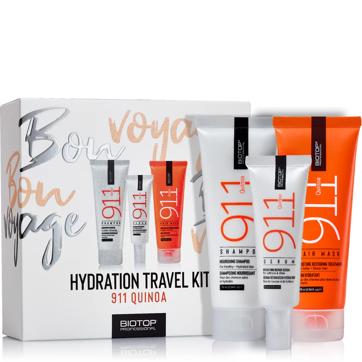 מתכוננת לטיול או לנסיעת עסקים וזקוקה לפתרון מושלם לשיער היבש והעייף שלך? סט הנסיעות המפנק של ביוטופ מסדרת קינואה 911 הוא כל מה שאת צריכה כדי לשמור על השיער שלך במיטבו בכל מקום ובכל זמן.