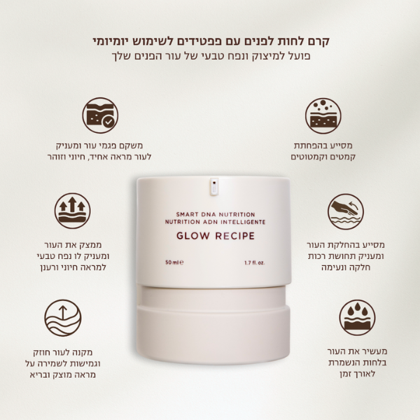 קרם לחות פפטידים 'GLOW RECIPE' למיצוק והענקת נפח טבעי לעור הפנים 50 מ"ל - אייקוניקס