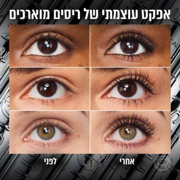 המסקרה מוסיפה לריסים אורך דרמטי של עד +5 מ"מ, נפח מרשים ותלתל מעוצב, ומראה עוצמתי ודרמטי. היא אידיאלית לשימוש יומיומי, מתאימה לכל סוגי הריסים, ומושלמת למי שמחפשת מסקרה מאריכה ומעצבת עם תוצאות דרמטיות. המסקרה ניתנת לשטיפה ומעניקה אפקט ריסים מוארכים חסר תקדים.
