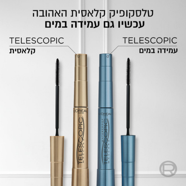 מסקרה טלסקופיק עמידה במים לאורך מקסימלי של הריסים - לוריאל פריז