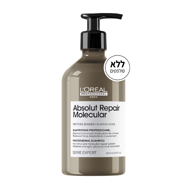 שמפו מקצועי ללא סולפט לשיקום שיער פגום מסדרת 'אבסולוט ריפר מולקולר' 500 מ"ל - לוריאל
