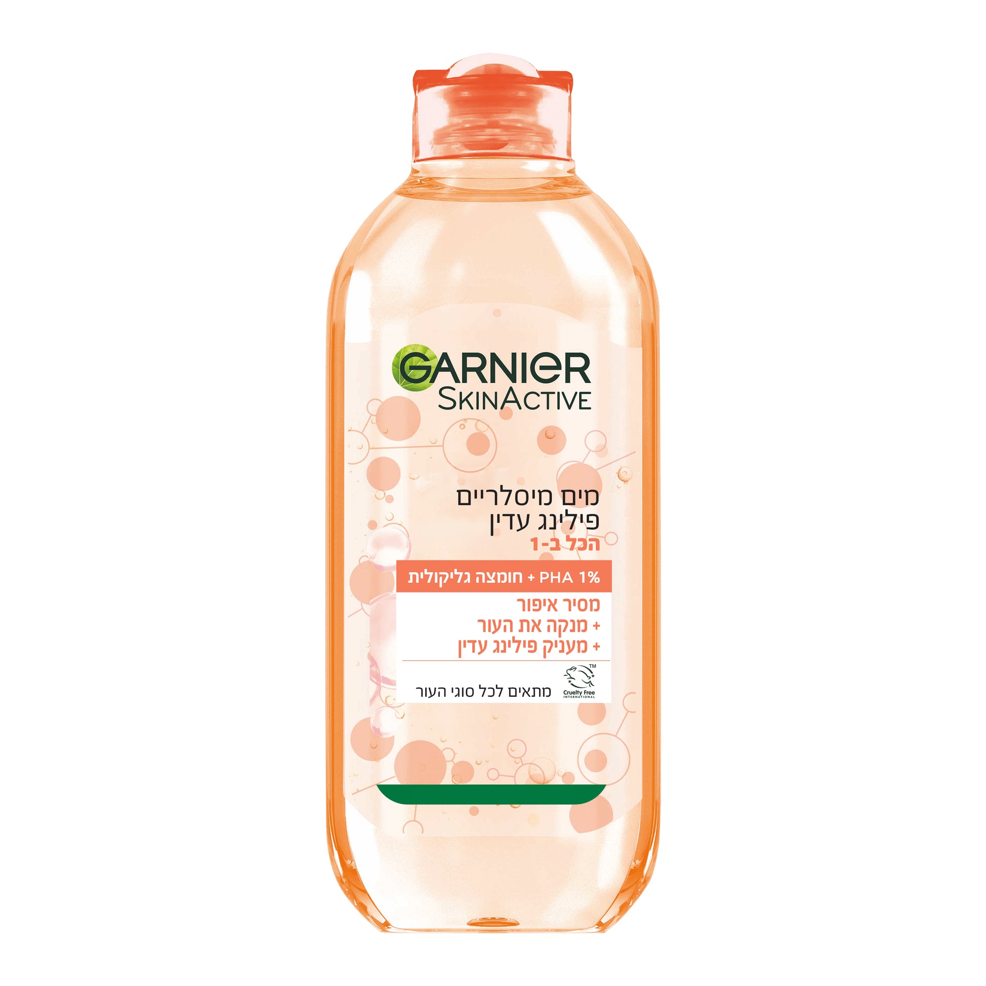 מים מיסלריים פילינג עדין של גרנייה הם מוצר רב-תכליתי המשלב ניקוי יסודי עם פילינג עדין לעור.