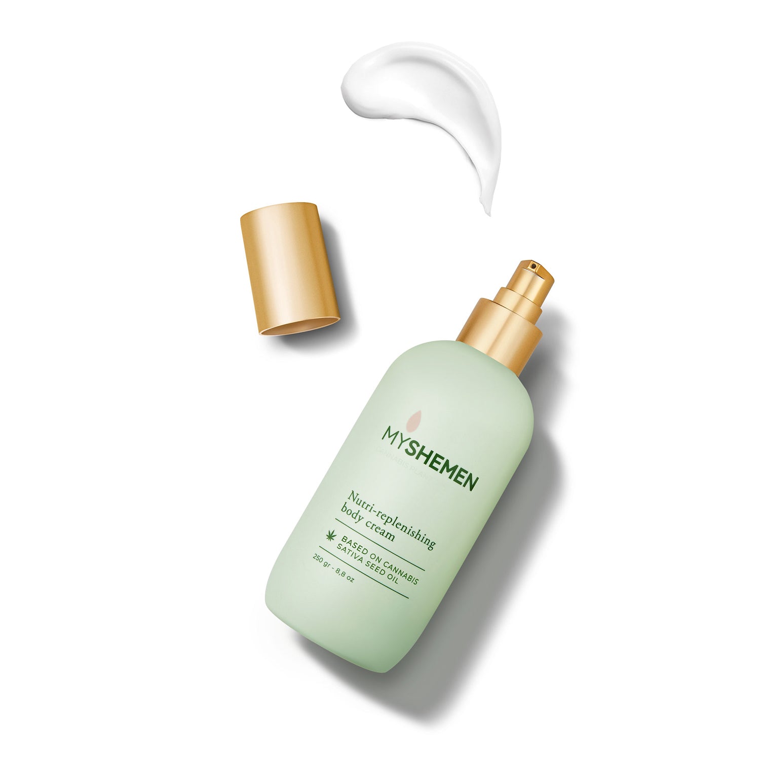 קרם גוף הקטיפתי של My shemen מכיל תערובת שמנים מופלאים שנלקטה מהטבע הפתוח, בתוספת שמן קנאביס המעודד את התחדשות העור, מרגיע ומעניק לו הגנה מפני השמש. הקרם עשיר גם בויטמינים וחומצות אמינו, המסייעים להאטת הזדקנות העור, מכיל גליצרין, ויטמין E וחומצה לקטית המעניקה בוסט של לחות לעור. התוצאה – גוף חלק, גמיש ומלא בלחות שנשארת לאורך כל היום.